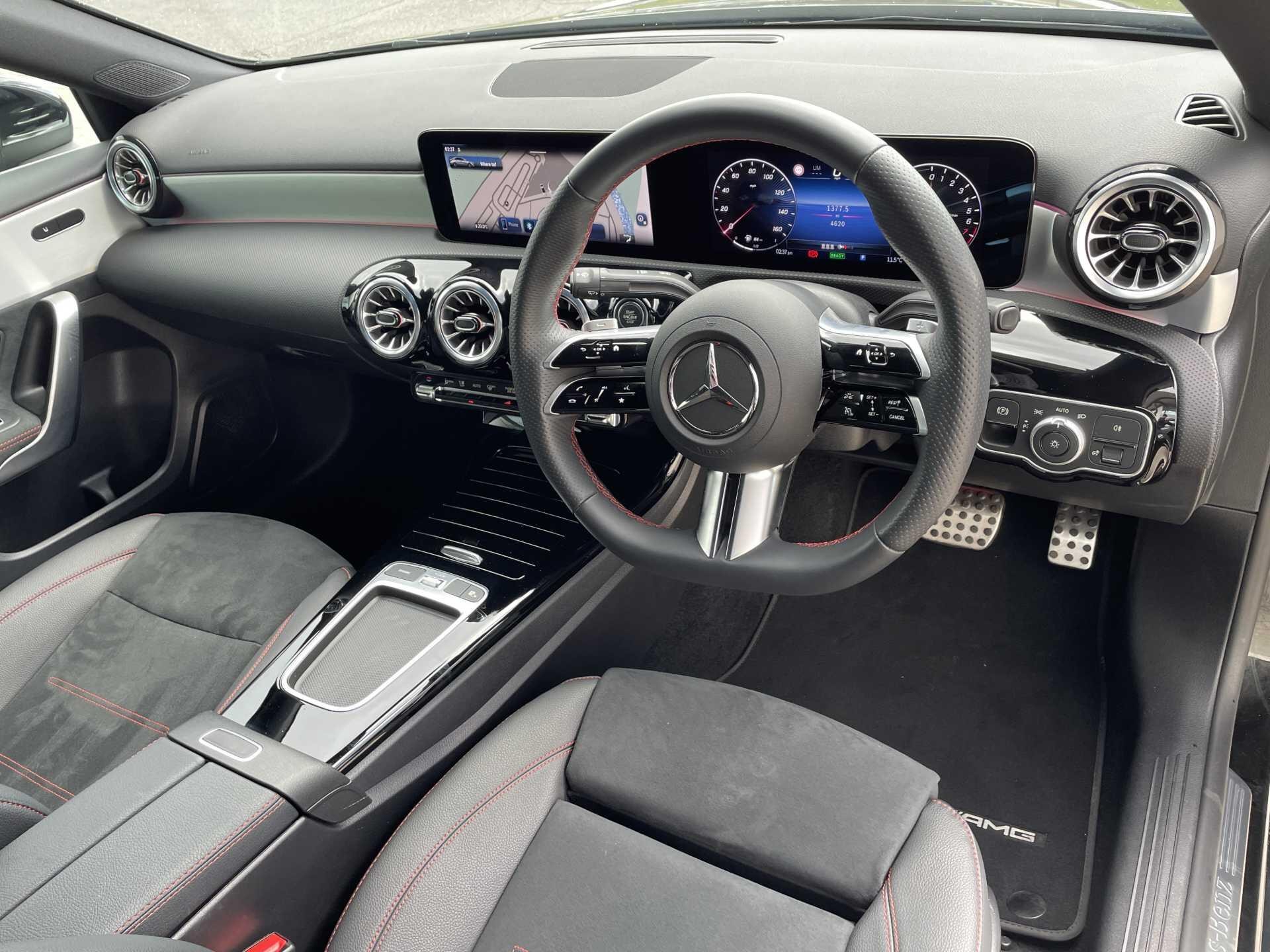 This 2025 Mercedes-Benz A Class A250e AMG Line (Executive) presents an exceptional opportunity with its remarkably low mileage of just 4443 miles, having had only one owner since new. This Euro 6 compliant model boasts a 1.3L petrol plug-in hybrid engine, offering an efficient and dynamic driving experience. As a Mercedes-Benz manufacturer approved vehicle, it comes with the assurance of quality and comes equipped with the desirable AMG Line trim. Notable features include seamless Smartphone Integration with Android Auto and Apple CarPlay, Headlamp Assist for automatic activation, and the KEYLESS-GO Comfort Package for effortless entry. Furthermore, the Parking Package with a rear camera and heated front seats enhance both convenience and comfort.