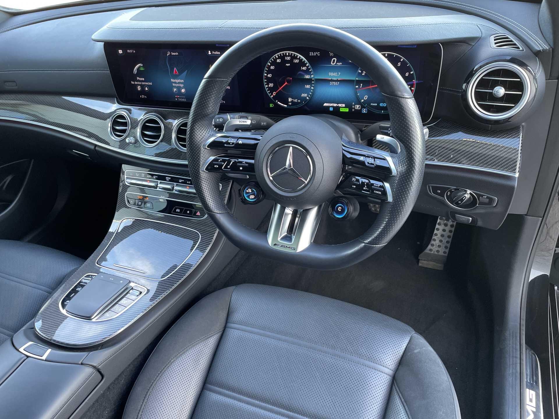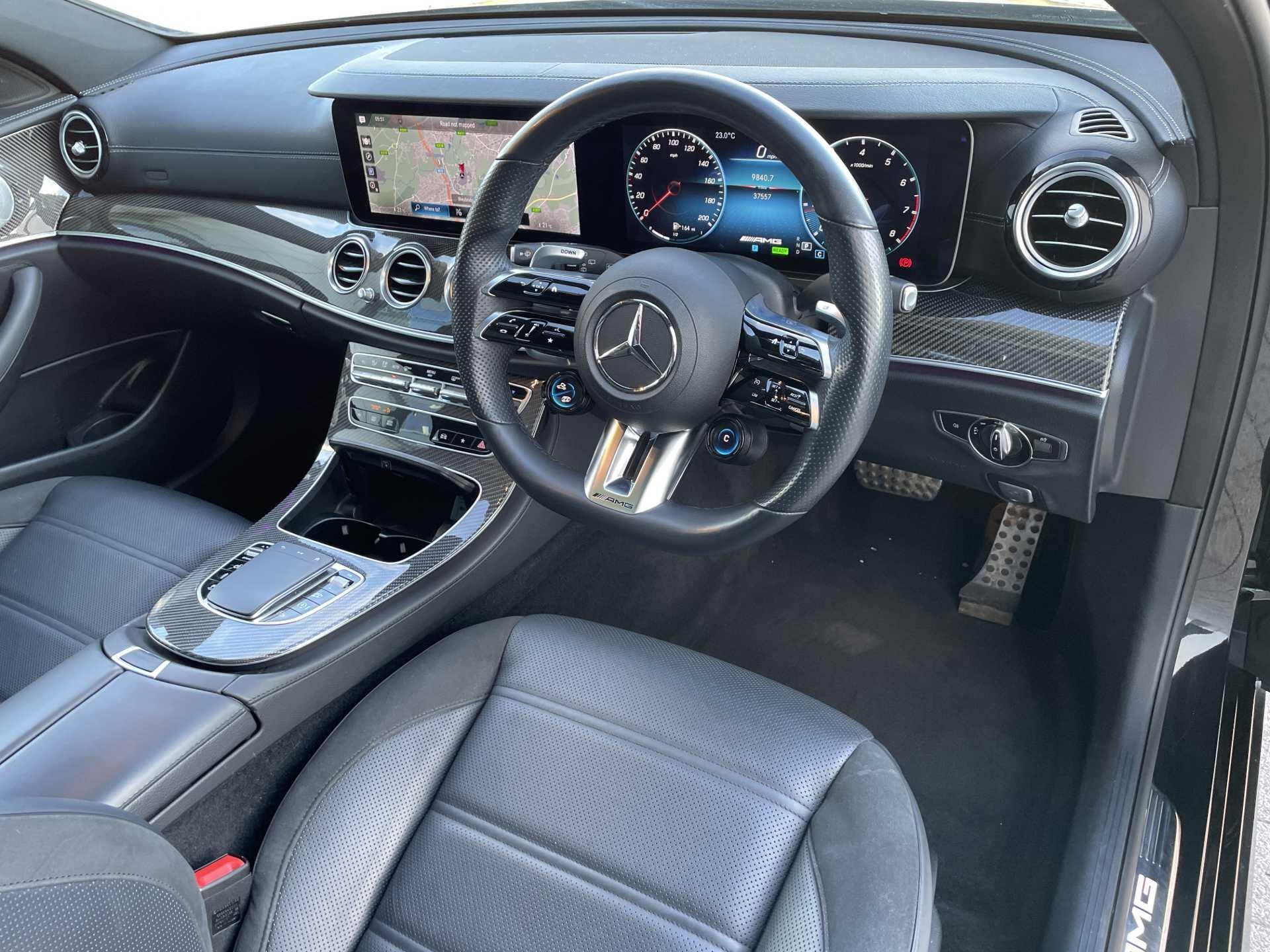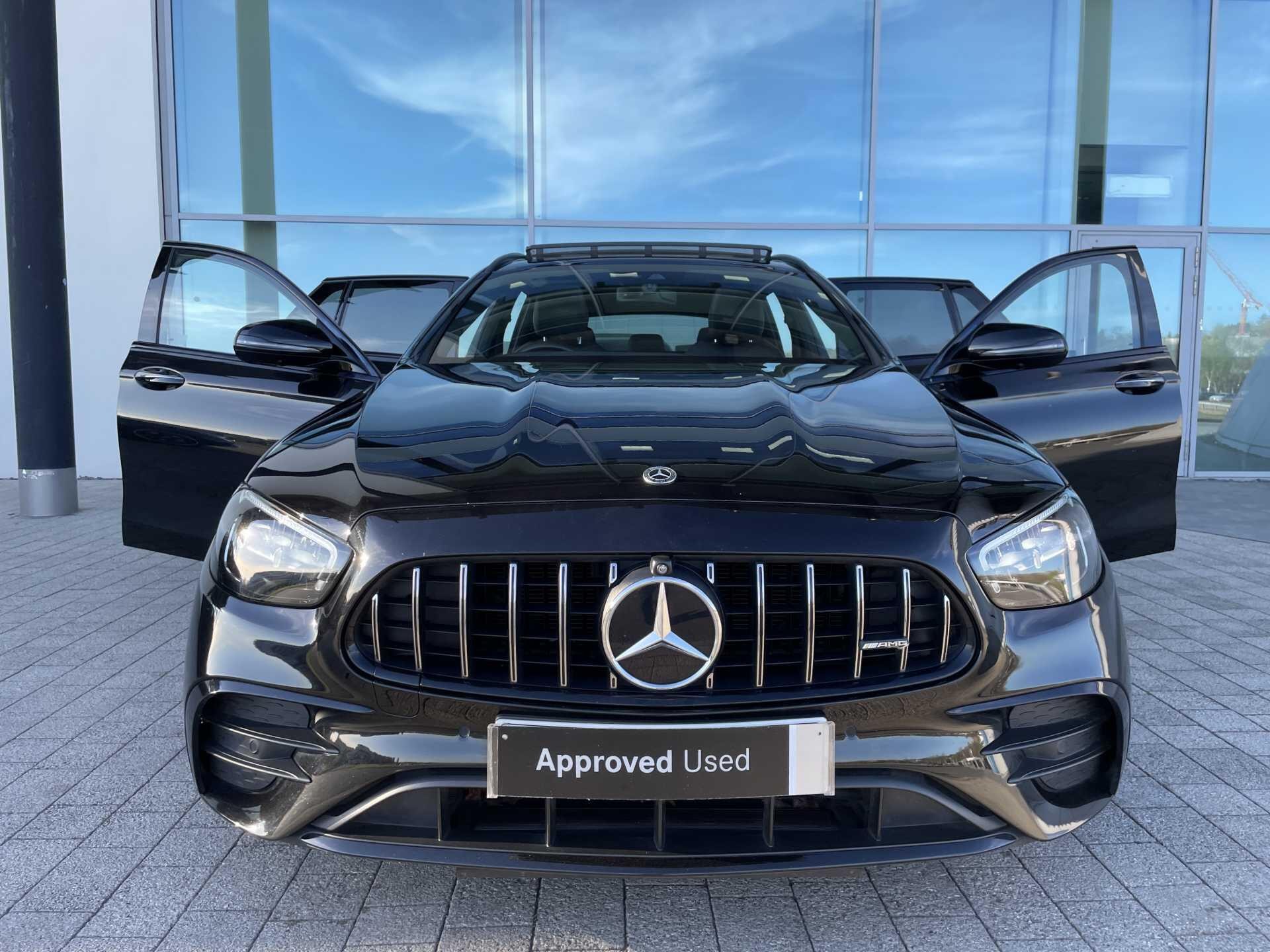 This 2022 Mercedes Benz E Class E53h BiTurbo AMG Night Edition (Premium Plus) is a Mercedes Benz manufacturer approved vehicle with a full dealership service history and only one owner. It features a powerful 3.0L Petrol Hybrid engine, Four Wheel Drive, and meets Euro 6 emission standards. Notable features include a Memory Package for the seats, a central stowage compartment with a 12V socket, Android Auto, Apple CarPlay, and wireless phone charging. Comfort is enhanced with heated front seats and a panoramic electric glass sunroof, while the rain sensor automatically activates the headlights for convenience.