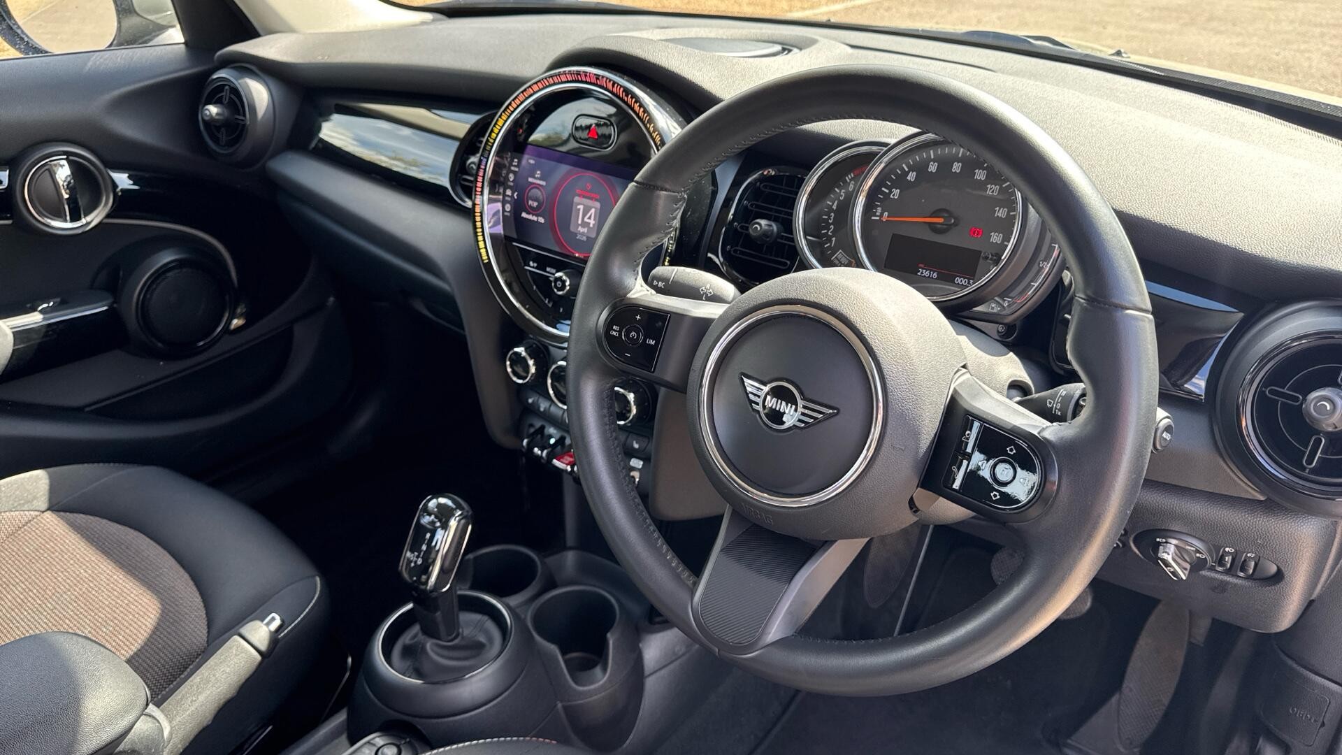This 2022 MINI Hatch Cooper Classic is a MINI manufacturer approved vehicle with a full dealership service history, having had only one owner from new. It boasts a 1.5L petrol engine, meeting Euro 6 emissions standards, and comes with a 12 month warranty and 12 months MOT provided on purchase. The last service was completed at 23,616 miles on 14th April 2026, and it features MINI Driving Modes for a customisable driving experience.