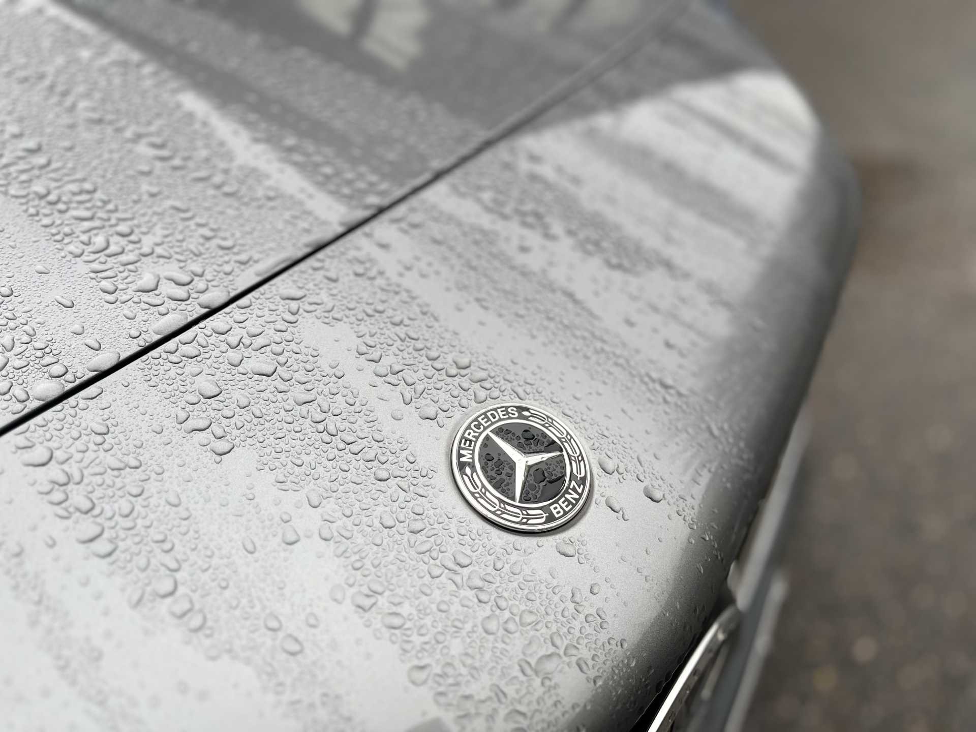 - AMG body styling with AMG front apron and rear apron and visible exhaust tailpipe in chrome trim elements
