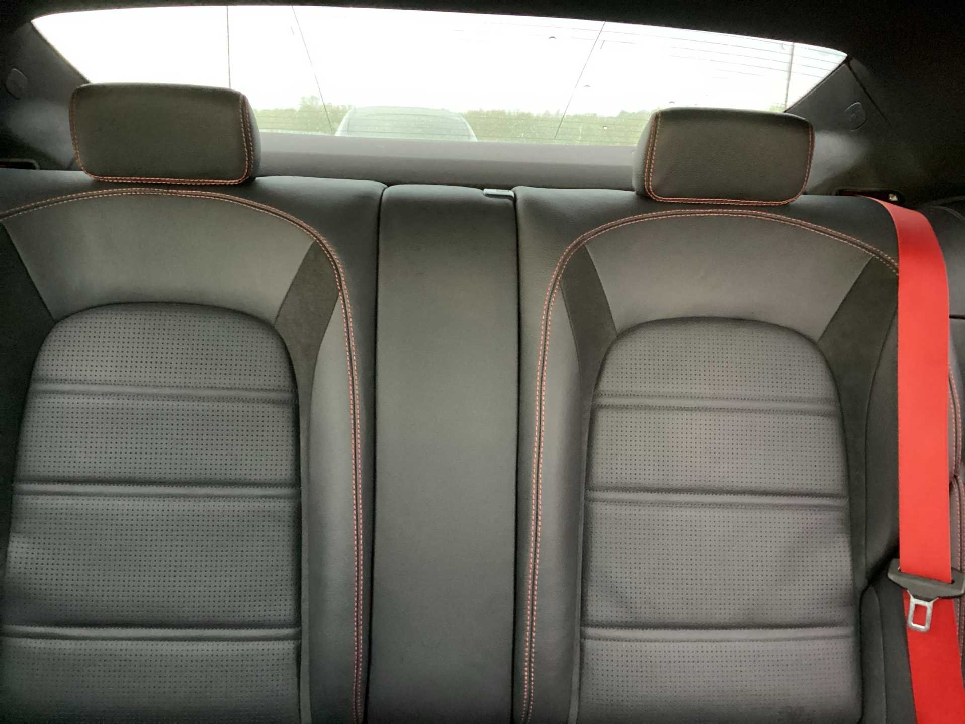 - Floor mats with black leather edging, red piping and AMG logo